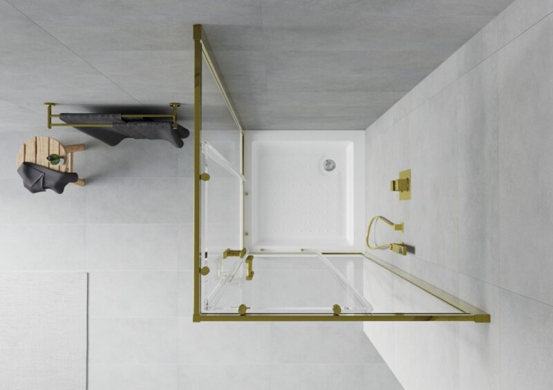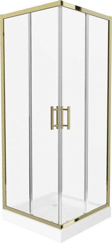 MEXEN/S – Rio sprchovací kút štvorec 80 x 80, transparent, zlato + vanička Rio vrátane výpuste 860-080-080-50-00-4510