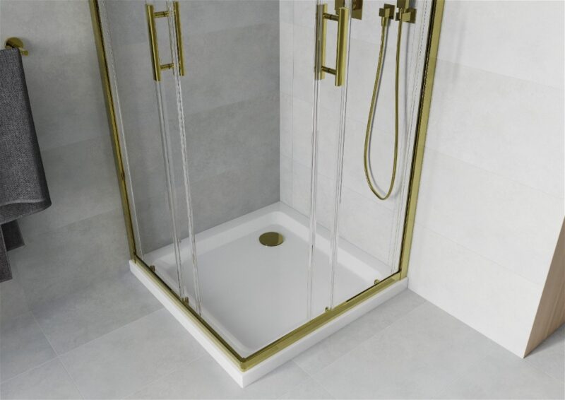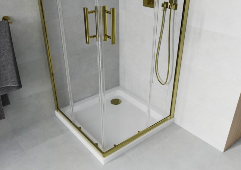 MEXEN/S – Rio sprchovací kút štvorec 80×80, transparent, zlatá + biela vanička so sifónom 860-080-080-50-00-4010G