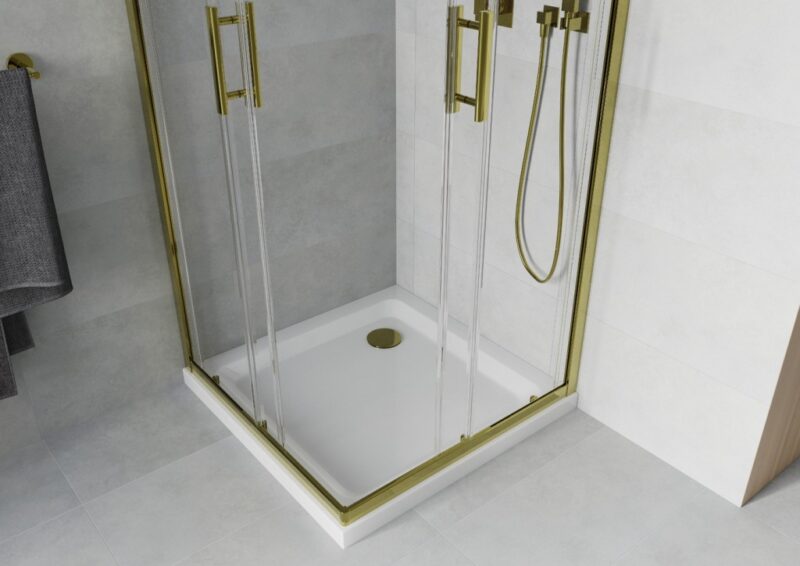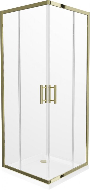 MEXEN/S – Rio sprchovací kút štvorec 90×90, transparent, zlatá + biela vanička so sifónom 860-090-090-50-00-4010G