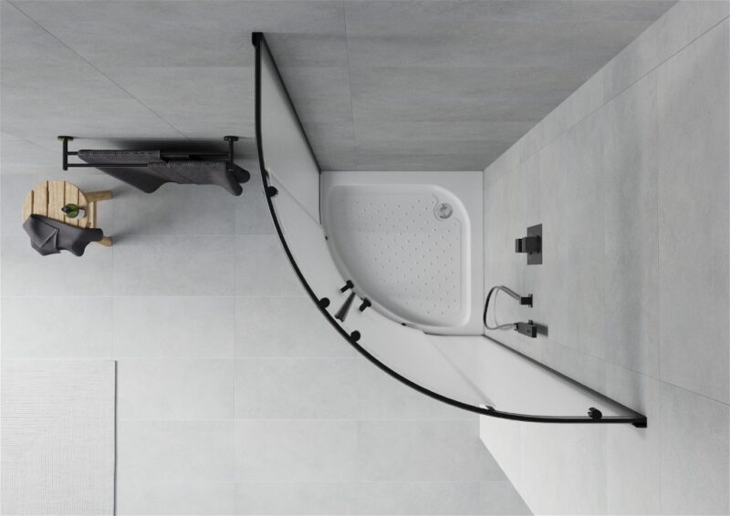 MEXEN/S – Rio sprchovací kút štvrťkruh 70 x 70, dekor, čierny + vanička Rio vrátane výpuste 863-070-070-70-30-4710