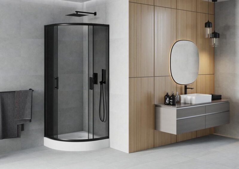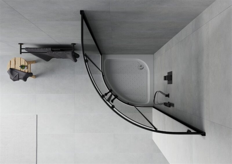 MEXEN/S – Rio sprchovací kút štvrťkruh 70 x 70, grafit, čierny + vanička Rio vrátane výpuste 863-070-070-70-40-4710