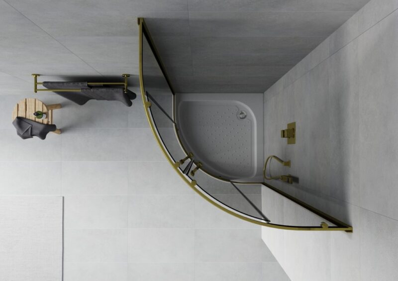 MEXEN/S – Rio sprchovací kút štvrťkruh 80 x 80, grafit, zlatá + vanička Rio, biela – 863-080-080-50-40-4710 863-080-080-50-0-4710