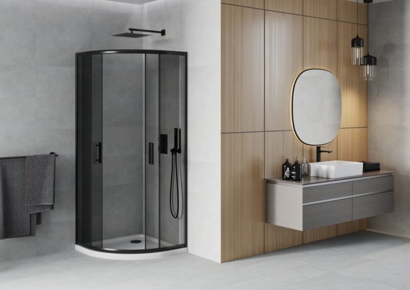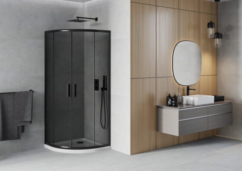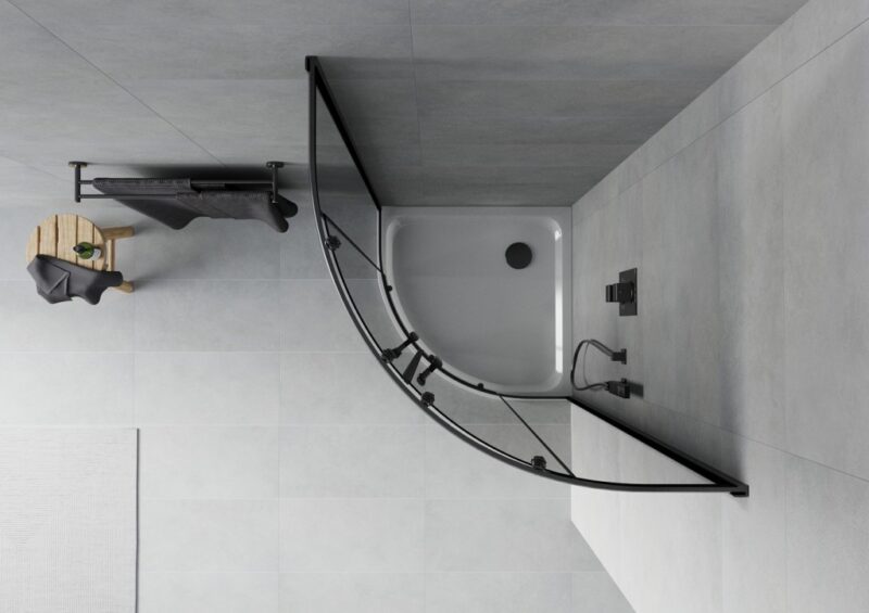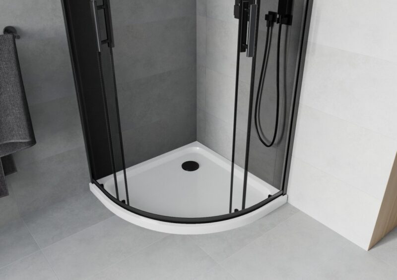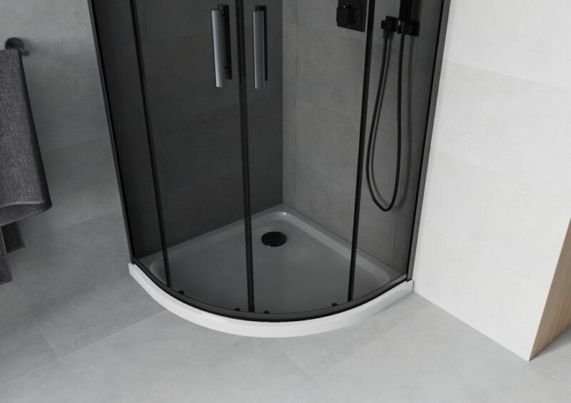 MEXEN/S – Rio sprchovací kút štvrťkruh 80×80, grafit, čierna + biela vanička so sifónom 863-080-080-70-40-4110B