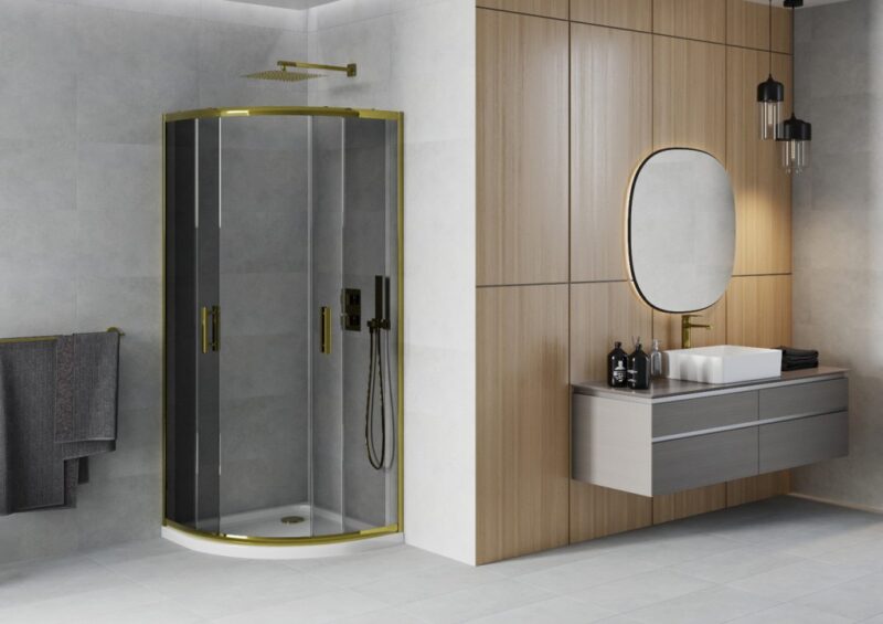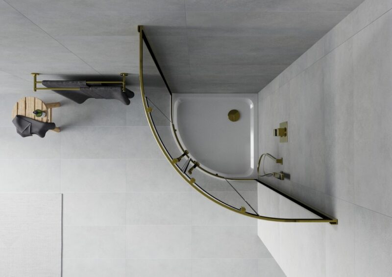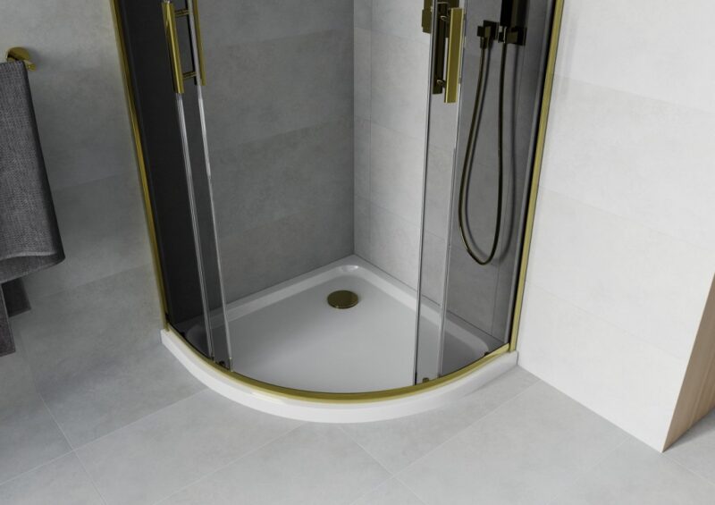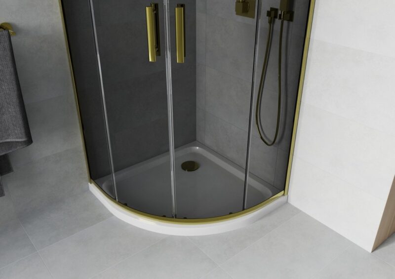 MEXEN/S – Rio sprchovací kút štvrťkruh 80×80, grafit, zlatá + biela vanička so sifónom 863-080-080-50-40-4110G