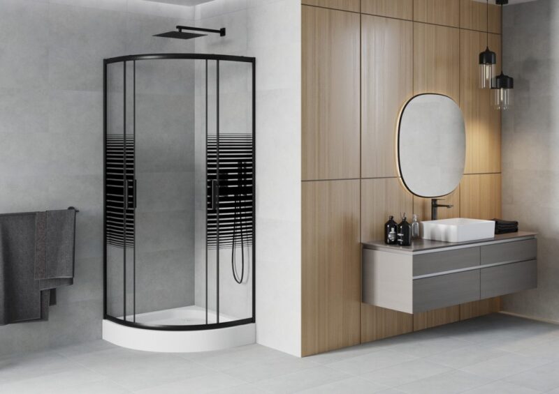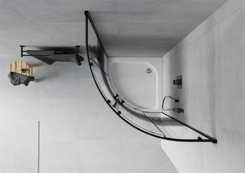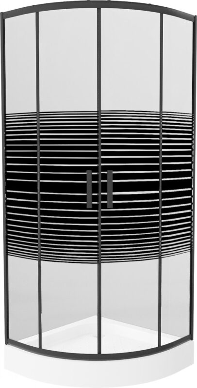 MEXEN/S – Rio sprchovací kút štvrťkruh 90×90, pruhy, čierna + biela vanička so sifónom 863-090-090-70-20-4710