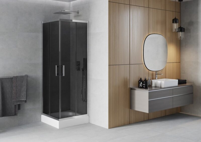 MEXEN/S – Rio štvorcový sprchovací kút 70 x 70, grafit, chróm + vanička Rio 860-070-070-01-40-4510