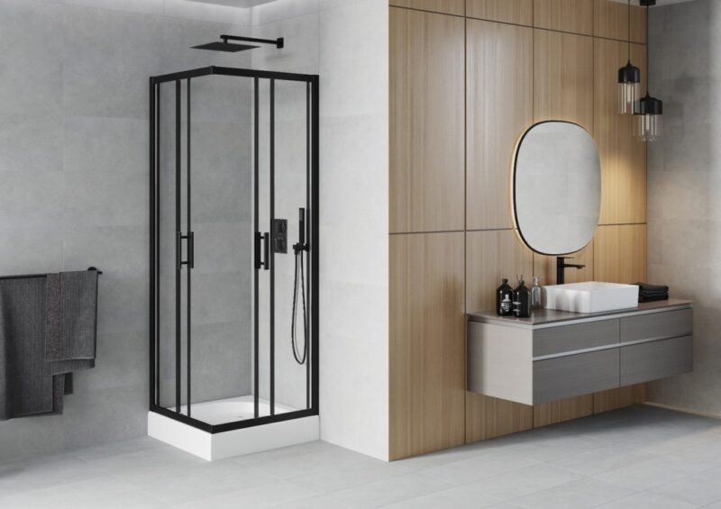 MEXEN/S – Rio štvorcový sprchovací kút 70 x 70, transparent, čierna + vanička Rio 860-070-070-70-00-4510