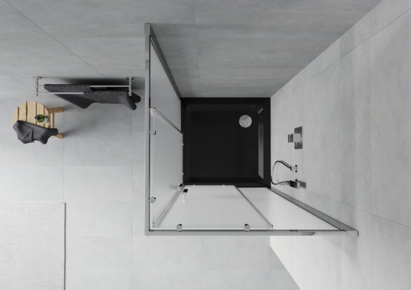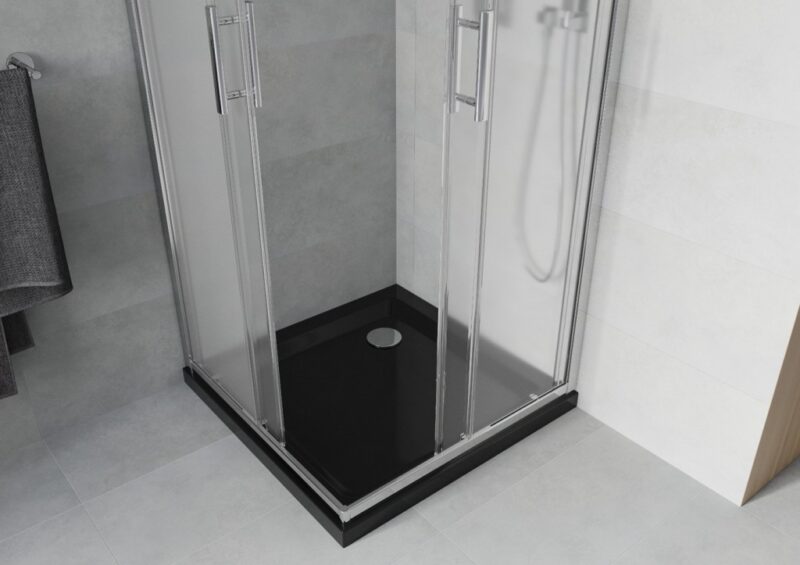 MEXEN/S – Rio štvorcový sprchovací kút 80 x 80, mráz, chróm + vanička so sifónom Flat, čierny 860-080-080-01-30-4070