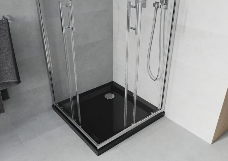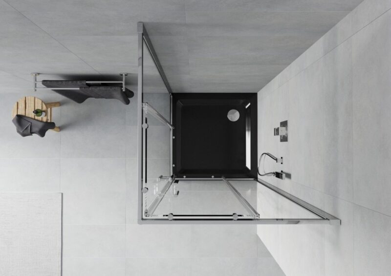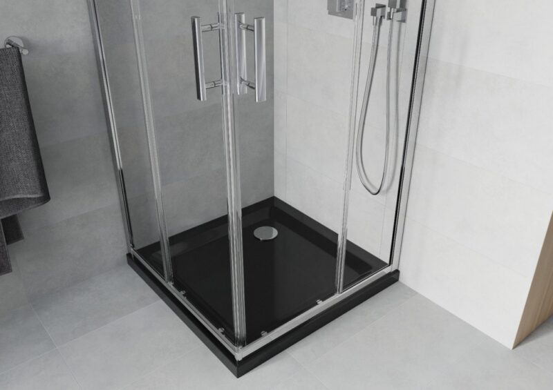 MEXEN/S – Rio štvorcový sprchovací kút 90 x 90, transparent, chróm + vanička so sifónom Flat, čierny 860-090-090-01-00-4070