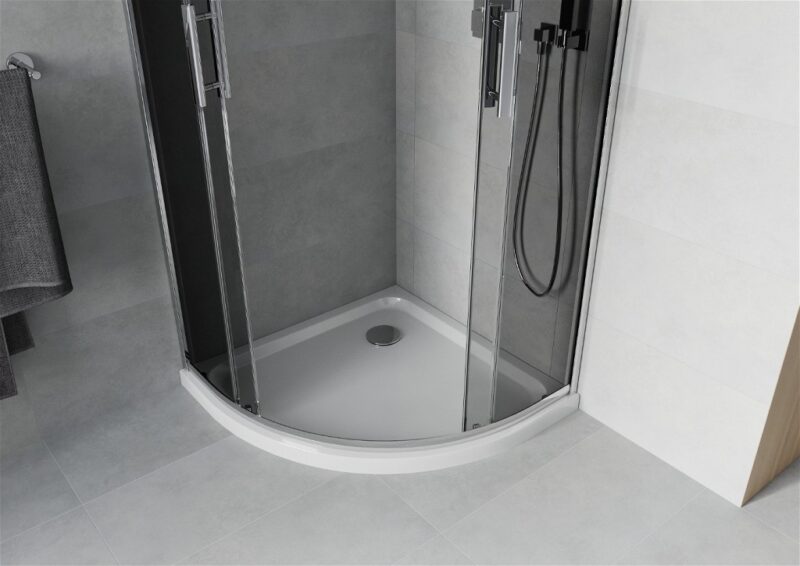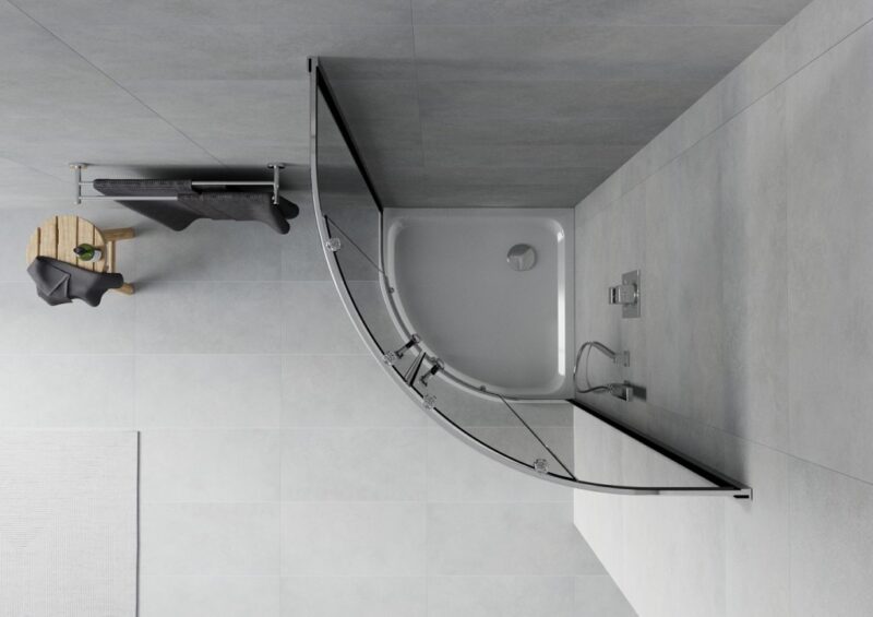 MEXEN/S – Rio štvrťkruhový sprchovací kút 80 x 80, grafit, chróm + vanička so sifónom Flat, biela 863-080-080-01-40-4110