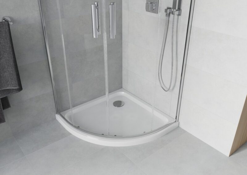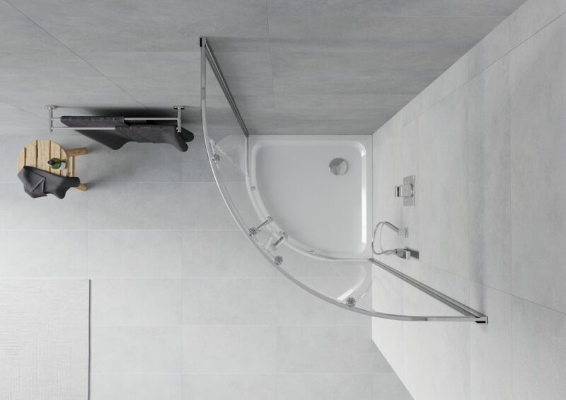 MEXEN/S – Rio štvrťkruhový sprchovací kút 80 x 80, transparent, chróm + vanička so sifónom Flat, biela 863-080-080-01-00-4110