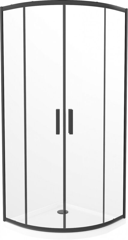 MEXEN/S – Rio štvrťkruhový sprchovací kút 90 x 90, transparent, čierny + vanička so sifónom Flat, biela 863-090-090-70-00-4110B