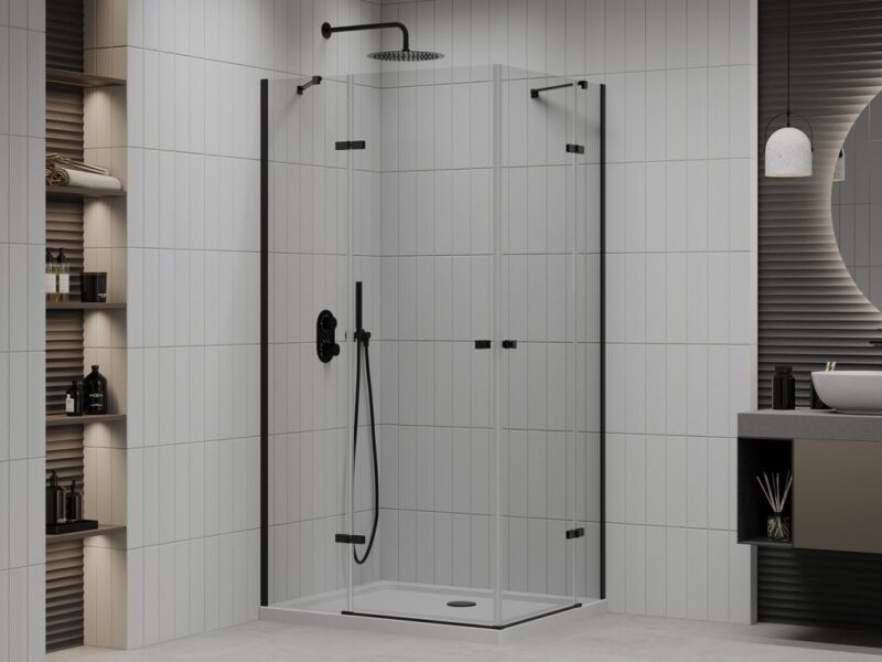 MEXEN/S – Roma Duo sprchovací kút 100×90, transparent, čierna + vanička so sifónom 854-100-090-70-02-4010B
