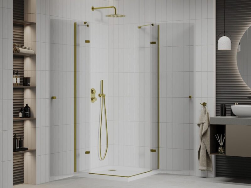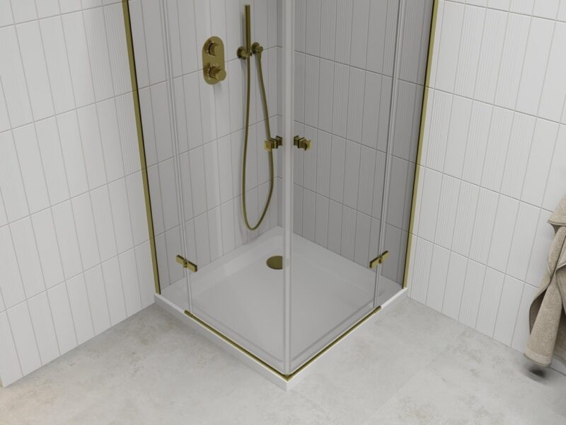 MEXEN/S – Roma Duo sprchovací kút 80×80, transparent, zlatá + vanička so sifónom 854-080-080-50-02-4010G