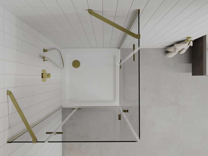 Technické údaje kabíny: Rozmer: 80×80 cm Výška: 190 cm Montáž: Univerzálna Vstup: otočné dvere Farba skla: Transparent – Transparent Povrchová úprava: zlatá Typ skla: Tvrdené Hrúbka skla: 6 mm Profil: Hliník Obliečka na jednoduché čistenie: Áno Vyrovnanie nerovností steny: Áno Nastavenie šírky: Áno Možné namontovať na bazény alebo dlaždice: Áno Kovová rukoväť Súprava tesnení na odvod vody Hliníkový prah dverí Technické údaje sprchovej vaničky: Rozmer: 80x80x5 cm biela farba Typ: štvorcový, tenký Materiál: Sanitárny akryl Vystužené dno Kompletný so sifónom vyčisteným zhora Priemer odtoku: 90 mm Povrchová úprava korku: zlatá(GT) Ean: 5907709165342