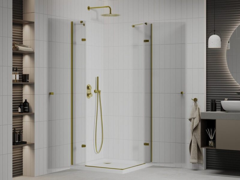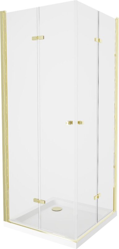MEXEN/S – Roma Duo sprchovací kút 90×90, transparent, zlatá + vanička so sifónom 854-090-090-50-02-4010G