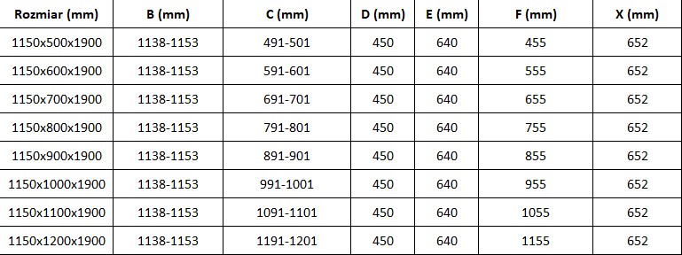 Veľkosť: 115 x 90 cm (dvere 115 cm, stena 90 cm)