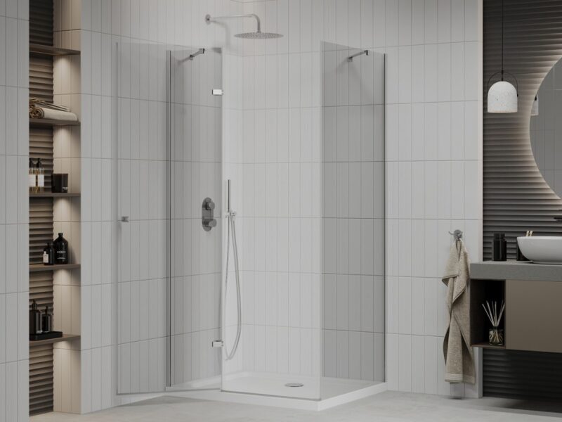 MEXEN/S – Roma sprchovací kút 120×90, kyvný, číre sklo, chróm + vanička 854-120-090-01-00-4010
