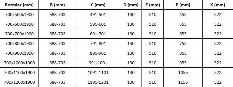 Veľkosť: 70×90 cm (dvere 70 cm, stena 90 cm)