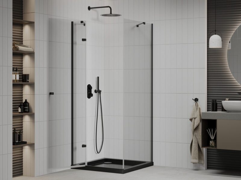 MEXEN/S – Roma sprchovací kút 80×80, transparent, čierna + čierna vanička so sifónom 854-080-080-70-00-4070B