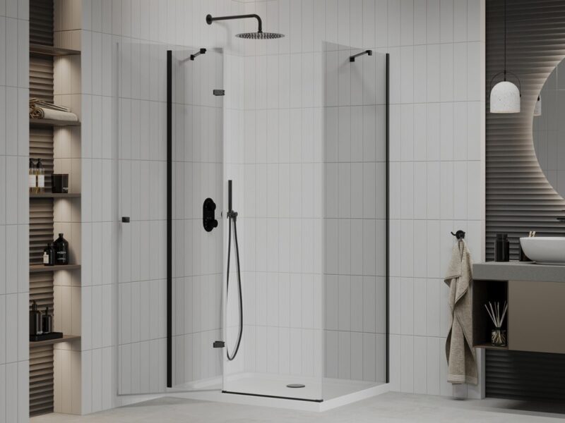 MEXEN/S – Roma sprchovací kút 90×100, transparent, čierna + biela vanička so sifónom 854-090-100-70-00-4010B