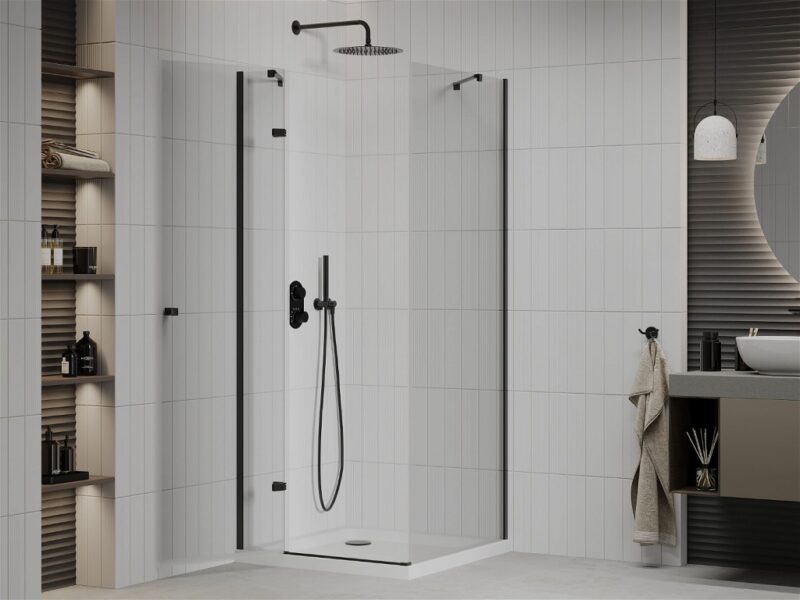 MEXEN/S – Roma sprchovací kút 90×90, transparent, čierna + biela vanička so sifónom 854-090-090-70-00-4010B