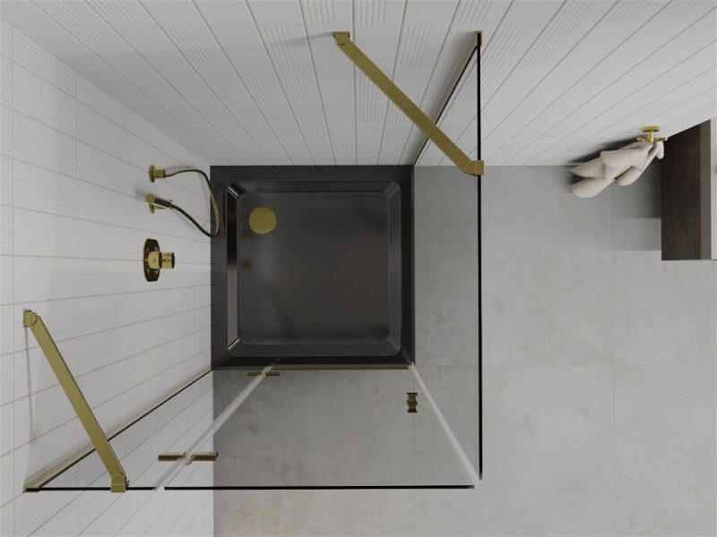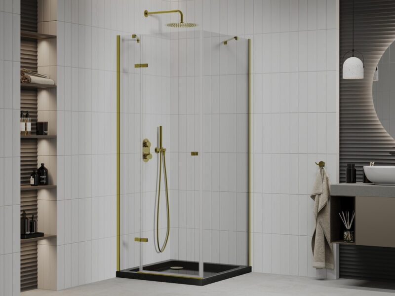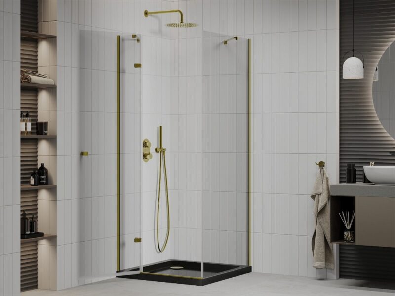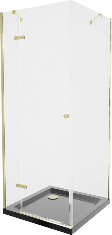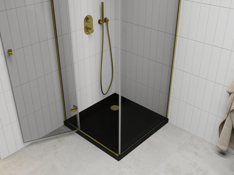 MEXEN/S – Roma sprchovací kút 90×90, transparent, zlatá + čierna vanička so sifónom 854-090-090-50-00-4070G