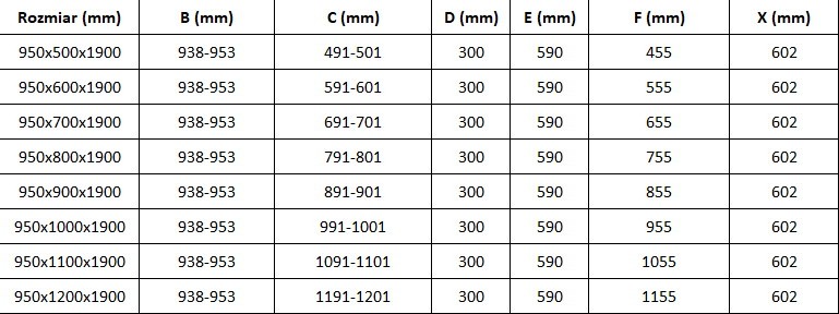 Veľkosť: 95×70 cm (dvere 95 cm, stena 70 cm)
