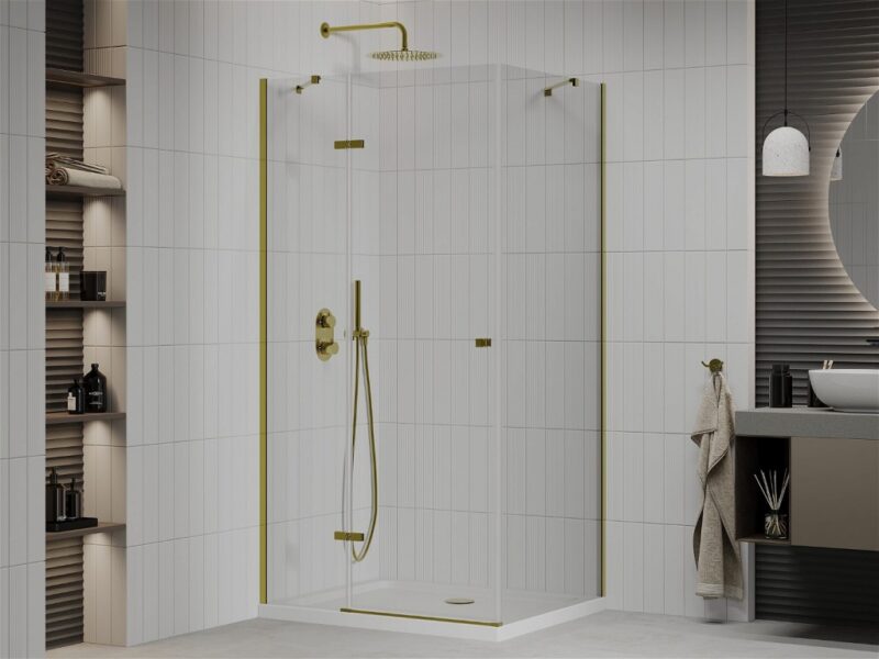 MEXEN/S – Roma sprchovací kút otvárací 120×90, sklo transparent, zlatá + vanička 854-120-090-50-00-4010