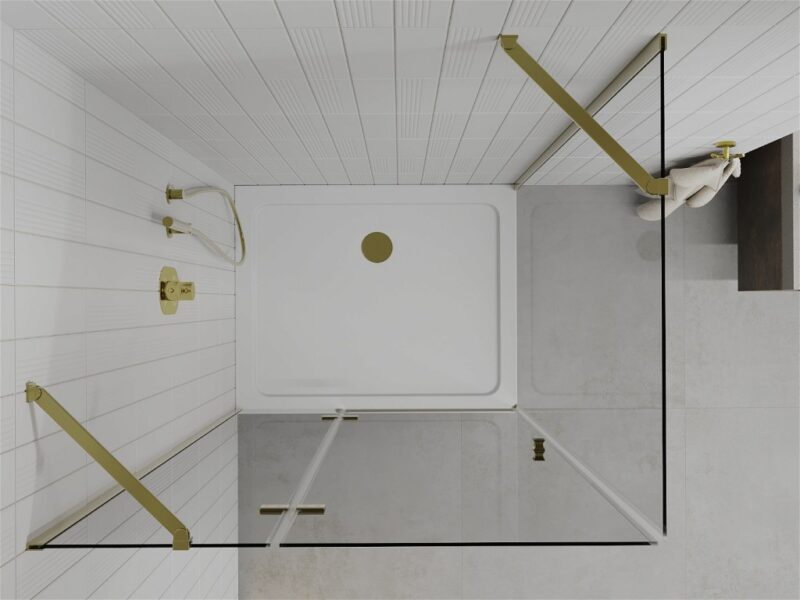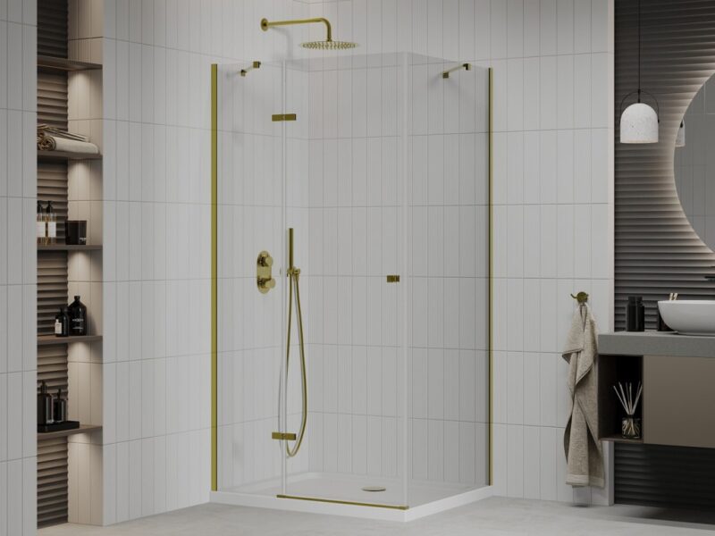 MEXEN/S – Roma sprchovací kút otvárací 90×100, sklo transparent, zlatá + vanička 854-090-100-50-00-4010