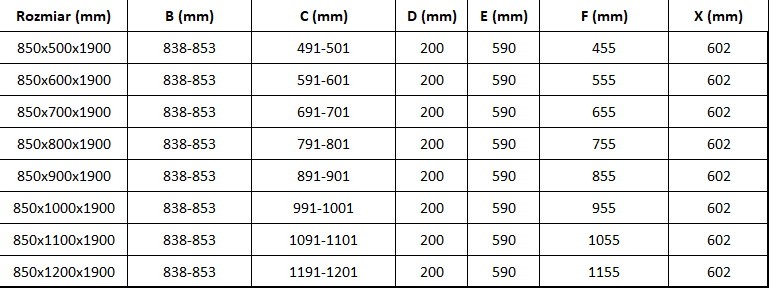 Veľkosť: 85×100 cm (dvere 85 cm, stena 100 cm)