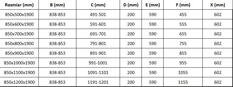 Veľkosť: 85×90 cm (dvere 85 cm, stena 90 cm)