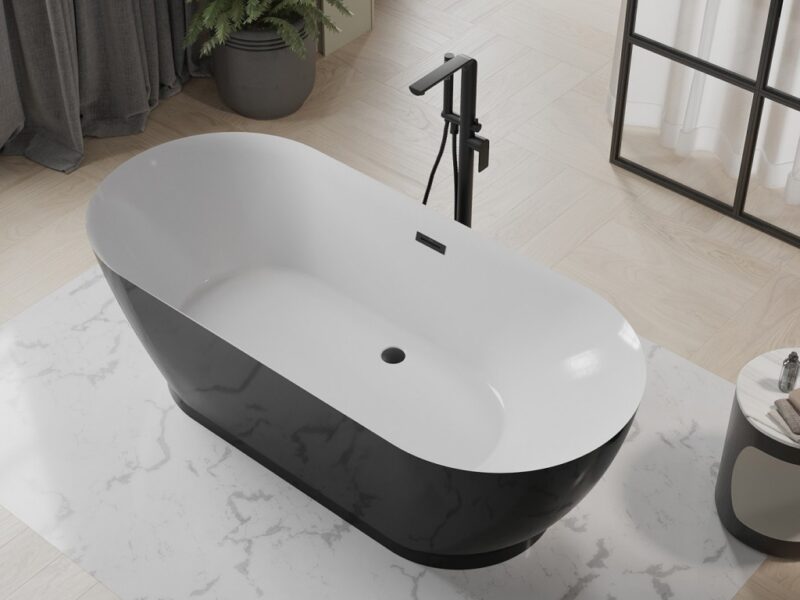 Špecifikácia produktu: Rozmer: 180 x 85 cm Výška: 58 cm Hĺbka: 41,5 cm Inštalácia: Voľne stojaca Materiál: Sanitárny akryl Farba: Biela/Čierna Povrchová úprava: čierna Prepadový otvor. Áno Otvor pre kohútik: Nie Sada obsahuje sifón a zátku click-clack Odolnosť proti matovaniu a UV žiareniu(GT) Ean: 5905315385185