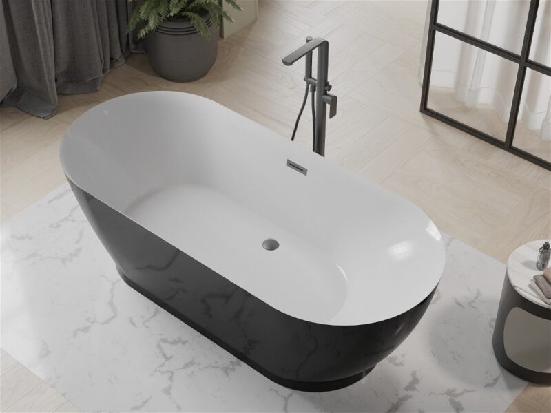 Špecifikácia produktu: Rozmer: 180 x 85 cm Výška: 58 cm Hĺbka: 41,5 cm Inštalácia: Voľne stojaca Materiál: Sanitárny akryl Farba: Biela/Čierna Povrchová úprava: Brúsený kov Prepadový otvor. Áno Otvor pre kohútik: Nie Sada obsahuje sifón a zátku click-clack Odolnosť proti matovaniu a UV žiareniu(GT) Ean: 5905315385192