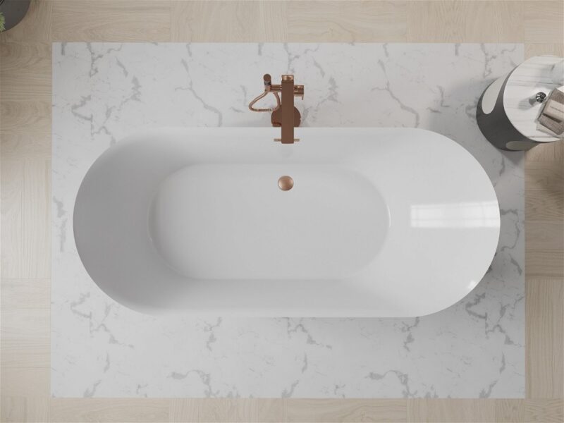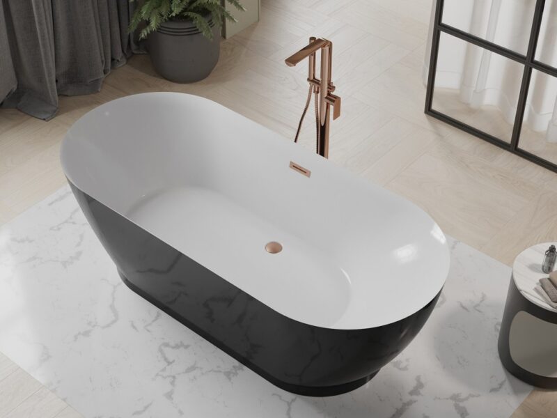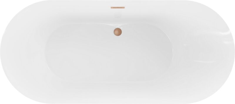 MEXEN/S – Roxy voľne stojaca vaňa 180 x 85, biela/čierna, sifón a prepad meď kartáčovaná 51201808575-65