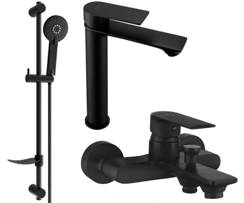 MEXEN/S – Royo DF40 Set umývadlové a vaňové batérie s príslušenstvom, čierna 72213DF40-70