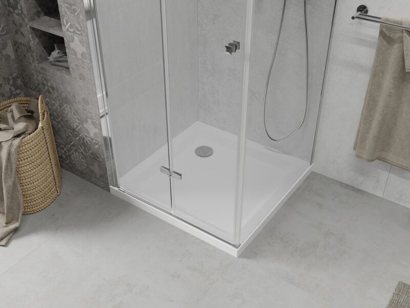 MEXEN/S – Sprchovací kút zalamovací Lima 80×80, sklo číre, chróm + vanička 856-080-080-00-00-4010