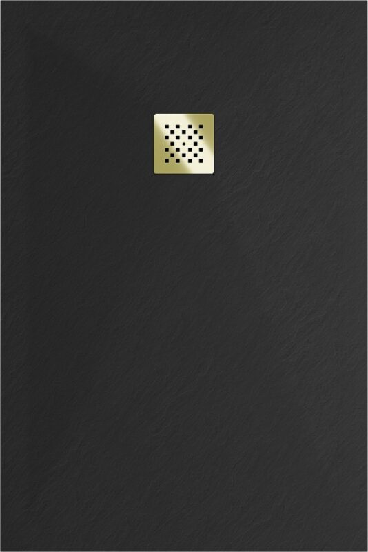 Technické dáta: Rozmer: 120x100x2, 5 cm Čierna farba Typ: Obdĺžnikový , Ultra plochý Inštalácia: Do podlahy alebo na podlahu Materiál: Minerálny kompozit Kamenná štruktúra Odolný produkt, ktorý sa nedeformuje Maximálna stabilita vďaka dobrej odolnosti proti nárazu Sada obsahuje sifón, ktorý sa čistí zhora Priemer odtoku: 90 mm Povrchová úprava mriežky: zlatá(GT) Ean: 5905315223630
