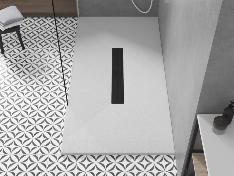 Technické dáta: Rozmer: 160x70x2, 6 cm biela farba Typ: Obdĺžnikový, Ultra plochý Inštalácia: Do podlahy alebo na podlahu Materiál: SMC – plast Kamenná štruktúra Možnosť rezania sprchovej vaničky Odolný produkt, ktorý sa nedeformuje Maximálna stabilita vďaka dobrej odolnosti proti nárazu Sada obsahuje sifón, ktorý sa čistí zhora Priemer odtoku: 90 mm Povrchová úprava mriežky: Čierna(GT) Ean: 5905315227508
