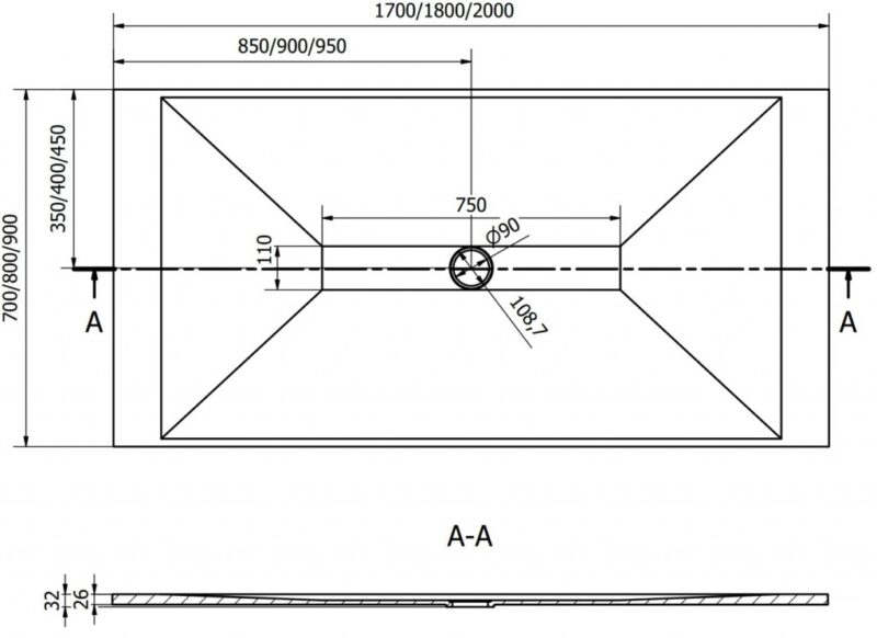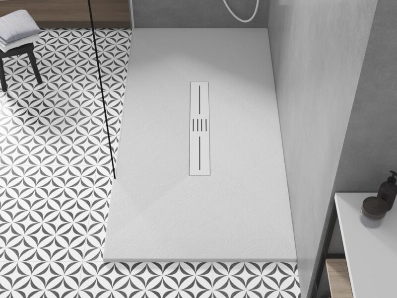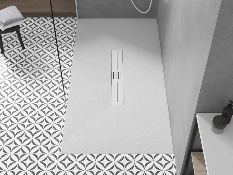 Technické dáta: Rozmer: 200x90x2, 6 cm biela farba Typ: Obdĺžnikový, Ultra plochý Inštalácia: Do podlahy alebo na podlahu Materiál: SMC – plast Kamenná štruktúra Možnosť rezania sprchovej vaničky Odolný produkt, ktorý sa nedeformuje Maximálna stabilita vďaka dobrej odolnosti proti nárazu Sada obsahuje sifón, ktorý sa čistí zhora Priemer odtoku: 90 mm Povrchová úprava mriežky: Biela(GT) Ean: 5905315227133