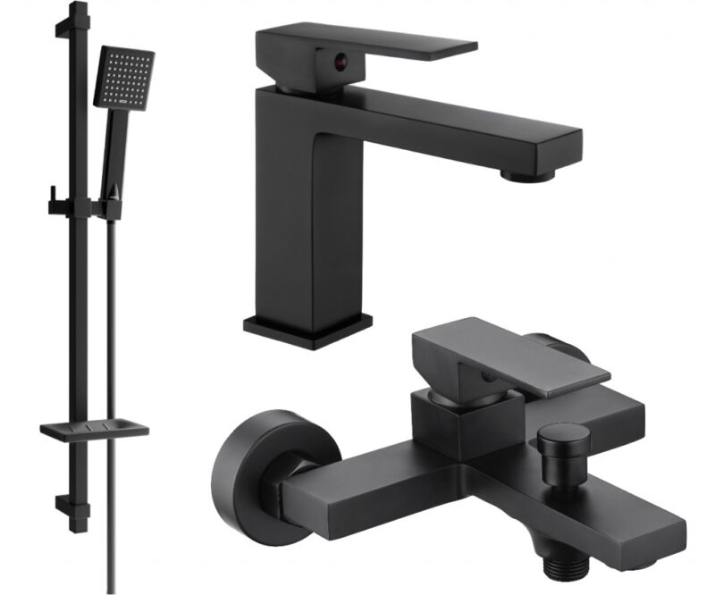 MEXEN/S – Uno DQ45 Set umývadlovej a vaňovej batérie s príslušenstvom, čierna 71403DQ45-70