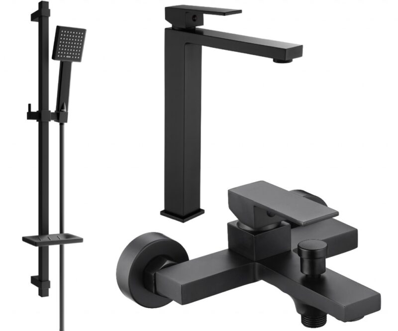 MEXEN/S – Uno DQ45 Set umývadlovej a vaňovej batérie s príslušenstvom, čierna 71413DQ45-70