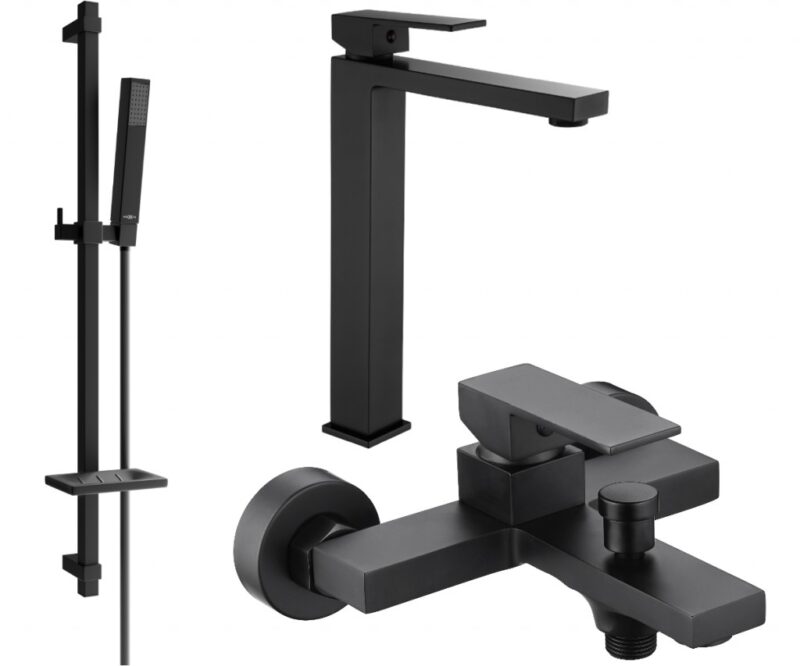 MEXEN/S – Uno DQ77 SET umývadlová batéria + vaňová s príslušenstvom, čierna 71413DQ77-70