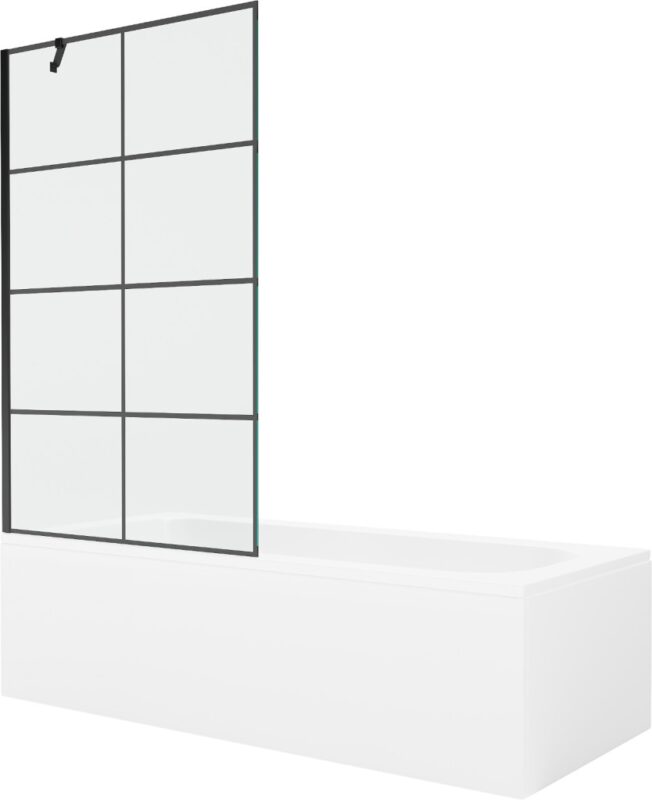 MEXEN/S – Vega obdĺžniková vaňa 150 x 70 cm s panelom + vaňová zástena 100, čierna vzor 550115070X9510007077
