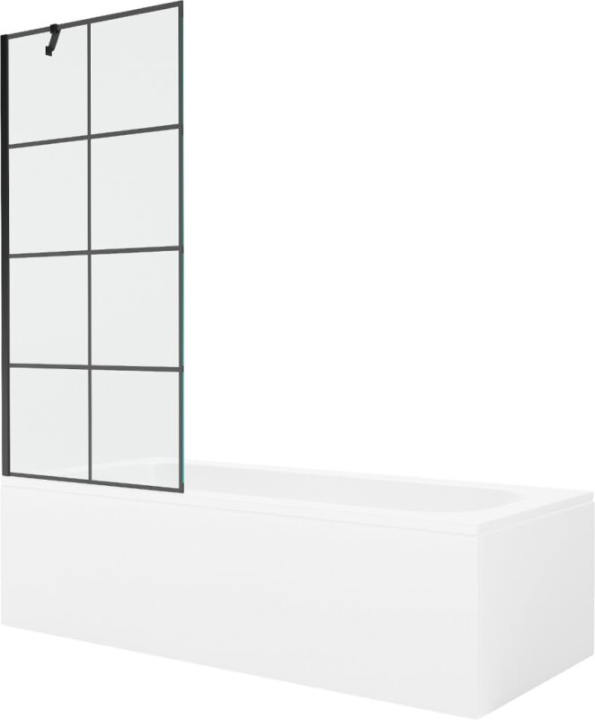 Domovská stránka » Katalóg » MEXEN/S – Vega obdĺžniková vaňa 160 x 70 cm s panelom + vaňová zástena 80, čierna vzor 550116070X9508007077