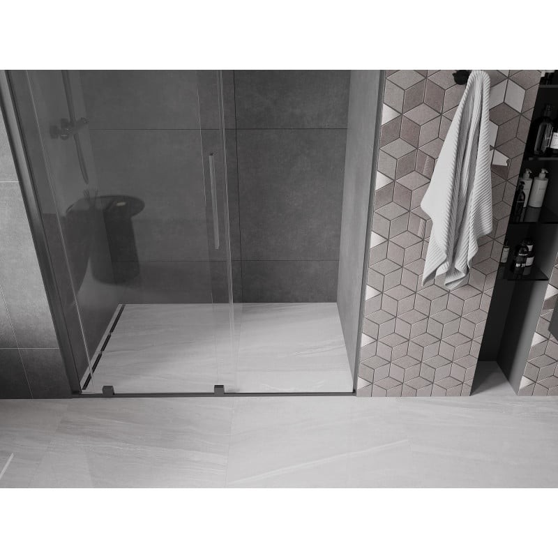 MEXEN/S – Velár posuvné sprchové dvere 130, transparent, grafit kartáčovaná 871-130-000-01-66