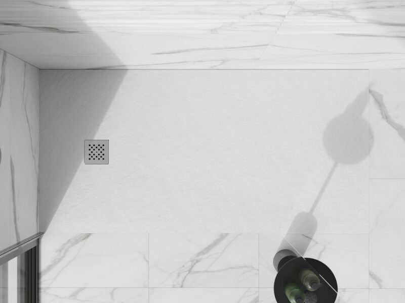 Technické dáta: Rozmer: 200 x 100 x 3 cm biela farba Typ: Obdĺžnikový, Ultra plochý Inštalácia: Do podlahy alebo na podlahu Materiál: Minerálny kompozit Kamenná štruktúra Odolný výrobok, ktorý sa nedeformuje Maximálna stabilita vďaka dobrej odolnosti proti nárazu Kompletný so sifónom vyčisteným zhora Priemer odtoku: 90 mm Povrchová úprava mriežky: Inox(GT) Ean: 5907709150492