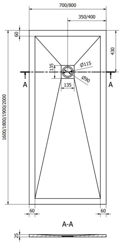 Technické dáta: Rozmer: 200 x 80 x 2,5 cm Farba: Antracit Typ: Obdĺžnikový, Ultra plochý Inštalácia: Do podlahy alebo na podlahu Materiál: Minerálny kompozit Kamenná štruktúra Odolný výrobok, ktorý sa nedeformuje Maximálna stabilita vďaka dobrej odolnosti proti nárazu Kompletný so sifónom vyčisteným zhora Priemer odtoku: 90 mm Povrchová úprava mriežky: Inox(GT) Ean: 5907709151390