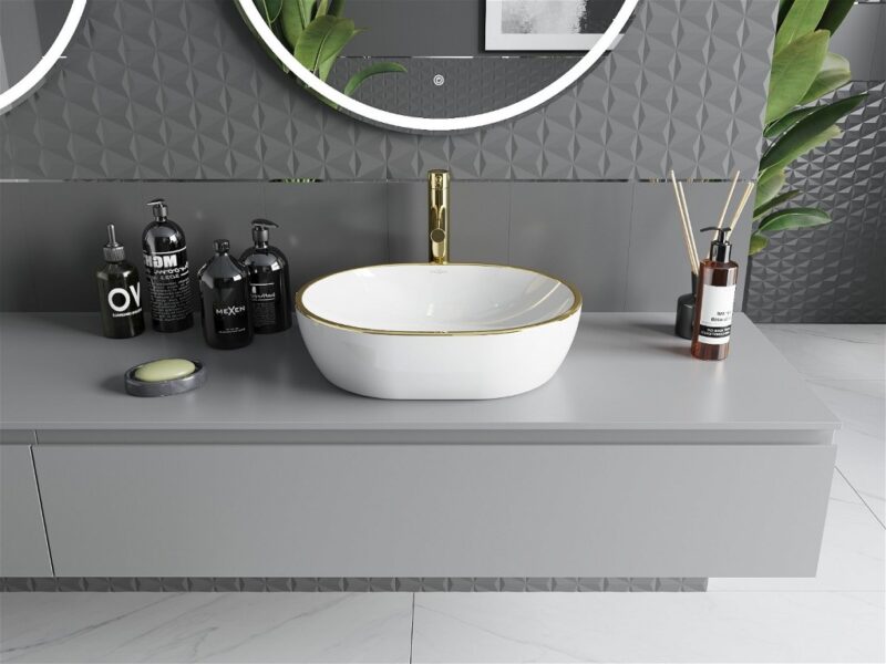 MEXEN – Viki umývadlo na dosku 48 x 35, biela/zlatá linka 21054805