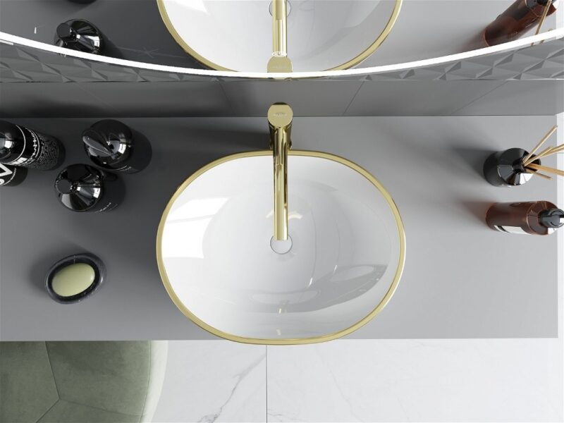 Domovská stránka » Katalóg » MEXEN – Viki umývadlo na dosku 48 x 35, biela/zlatá vzor 21054809